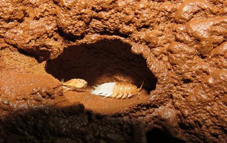 Esta cochinilla anfibia ciega y despigmentada puede dar al orden de los isópodos los 15 minutos de fama que estaban esperando. La nueva especie tiene placas cónicas en la base de sus patas que le dan un aspecto espinoso y un comportamiento peculiar: Para mudar su exoesqueleto se construye refugios esféricos de barro.