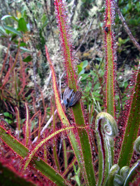 Facebook sirve para mucho más que estar en contacto con amigos y conocidos, así lo demuestra el descubrimiento de esta planta carnívora de la que se tuvo noticia gracias a las fotos publicadas en la red social. Drosera o Rocío de sol es el género más numeroso de plantas carnívoras y esta especie es la más grande descubierta en América. Aunque es muy abundante localmente, solo está presente en la cumbre de una montaña y ya ha sido declarada en peligro crítico de extinción. Igual que otras especies del género segrega una mucosidad espesa con aspecto de rocío que atrae a los insectos a la superficie de sus hojas que compensan la falta de minerales de los suelos en los que crece.