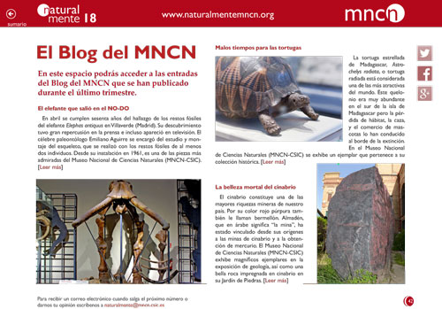 Blog del MNCN Entradas del blog del Museo publicadas entre el 15 de marzo y el 15 de junio de 2018 Publicado en NaturalMente 18 Autor Carmen Martínez Documentación Artículo en formato pdf Contacto