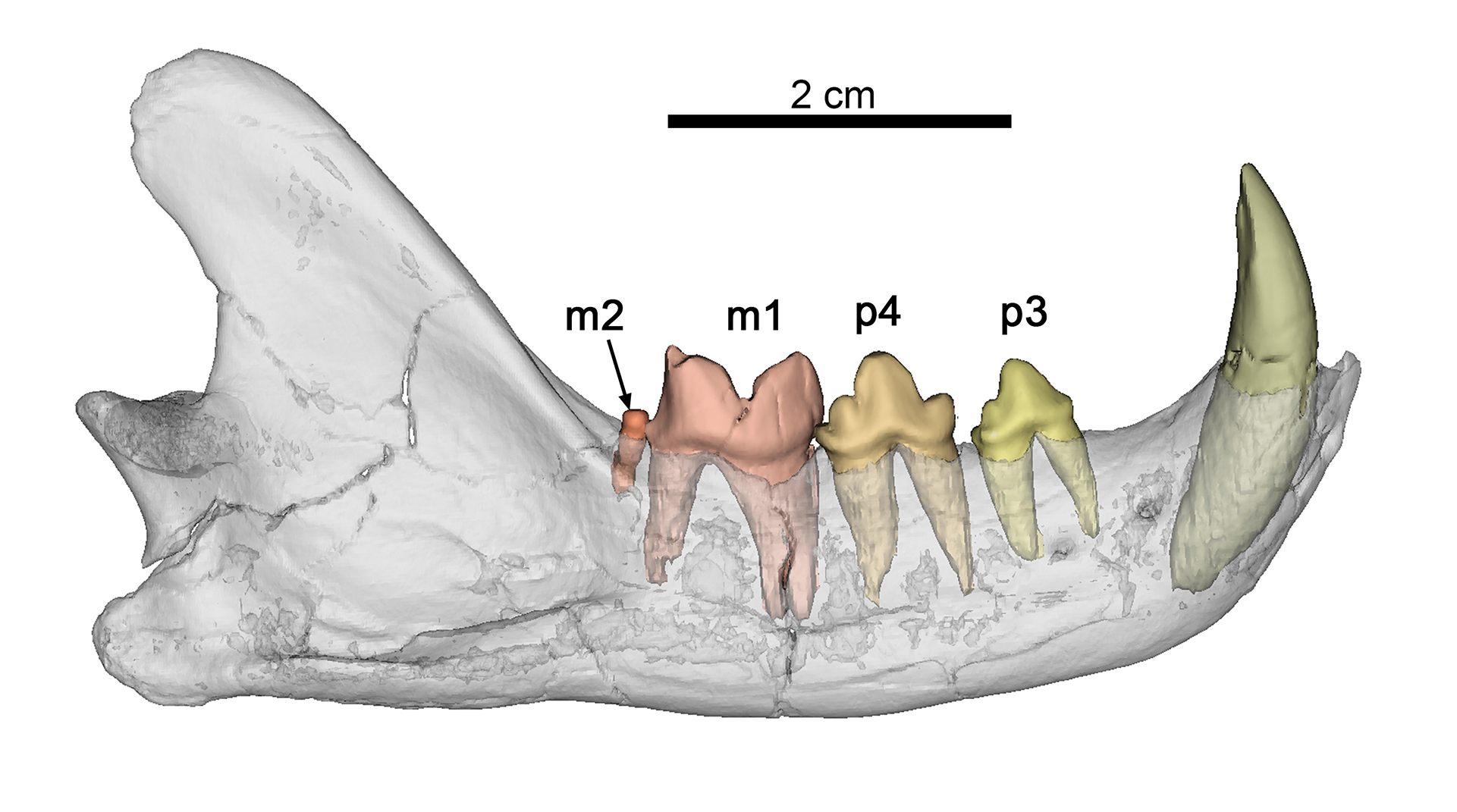“Recuperamos la mandíbula prácticamente completa que conservaba casi toda la dentición en un estado excepcional. Lo más sorprendente es que poseía un diminuto segundo molar inferior (m2), un diente ausente en todos los félidos actuales y fósiles excepto en Proailurus, el primer félido conocido en el registro fósil, procedente de yacimientos de hace 25 millones de años, mucho más antiguos que el de Príncipe Pío”, aclara la investigadora del MNCN Gema Siliceo. Según el paleoartista Mauricio Antón: “Gracias al uso de CT Scan, hemos podido estudiar la morfología interna de estos dientes y observado que el m2 poseía una raíz relativamente grande”.