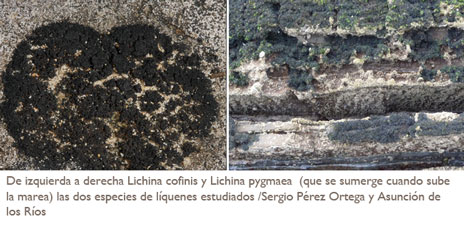 En este estudio han analizado molecularmente las cianobacterias de las dos especies de líquenes de aguas frías, Lichina pygmaea y Lichina confinis. La primera vive en la franja intermareal, es decir, que el agua la cubre cuando la marea sube, la segunda vive en la franja supralitoral por lo que solo recibe las salpicaduras del agua durante la marea alta. 'Se trata de dos especies que conviven en espacios diferentes pero muy cercanos entre sí', aclara la investigadora del MNCN, Asunción de los Ríos.