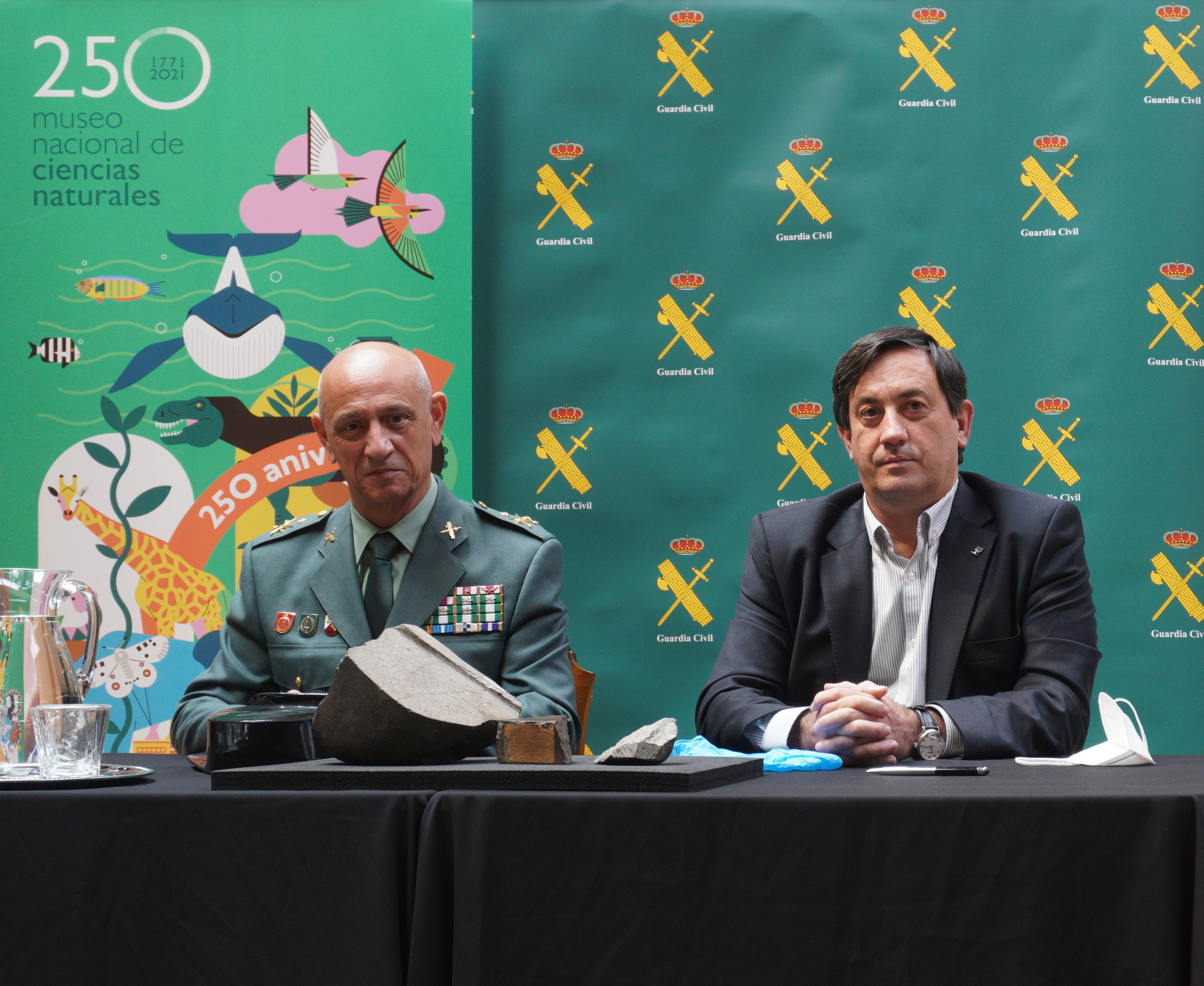 La intervención policial se inició a instancias del MNCN cuando el conservador de la colección de Geología, Aurelio Nieto, descubrió el anuncio en Internet de la venta del fragmento y reconoció el etiquetado de las colecciones del museo., Se alertó en ese momento a la Guardia Civil, en concreto al SEPRONA de Tres Cantos, Madrid, a través de una denuncia. Los Agentes lograron identificar al autor del anuncio y, tras comprobar la autenticidad del fragmento y el etiquetado, procedieron a su requisición y devolución en el día de hoy al museo. “Recuperar esta pieza nos permite volver a exponerla al público, junto con los otros fragmentos del meteorito que se conservan en el museo. Es además una manera excelente de seguir celebrando nuestro 250 aniversario”, explica el director del MNCN Rafael Zardoya.