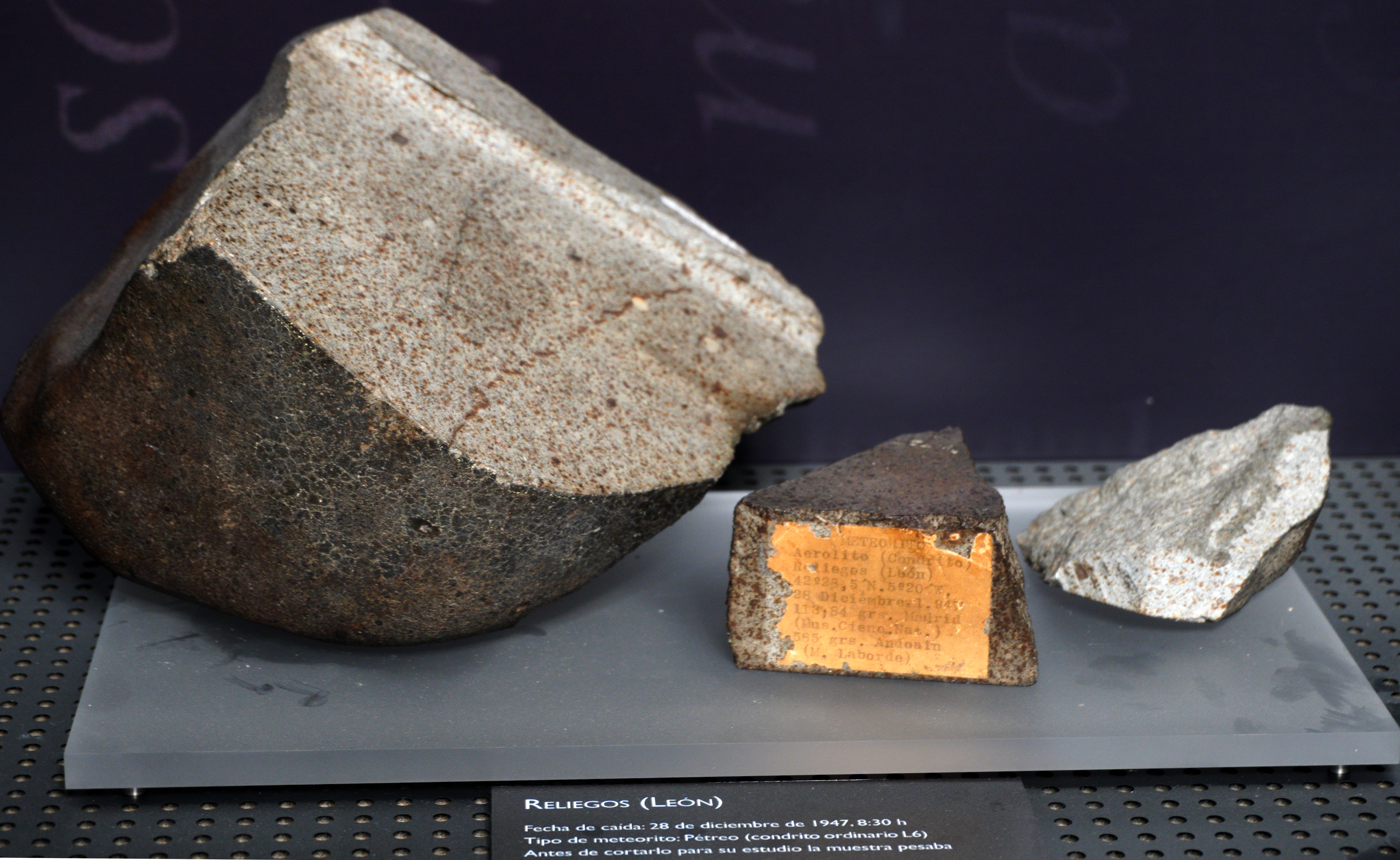 El fragmento localizado forma parte del meteorito que fue hallado en la localidad de Reliegos (León) en el año 1947, y fue el investigador Laborde Welinde, fallecido en 1993, el encargado de estudiarlo. “Los meteoritos se estudian para conocer mejor el origen del Sistema Solar, la composición del núcleo terrestre e incluso indagar en el origen de la vida” explica Aurelio Nieto que a partir de ahora será el responsable de su custodia. “En este caso se trata de un meteorito rocoso, es decir, condrito que cayó en 1947. Para su estudio se cortó y actualmente, además de los que tenemos en el museo hay fragmentos en los museos de historia natural de Washington y Nueva York”, continua.