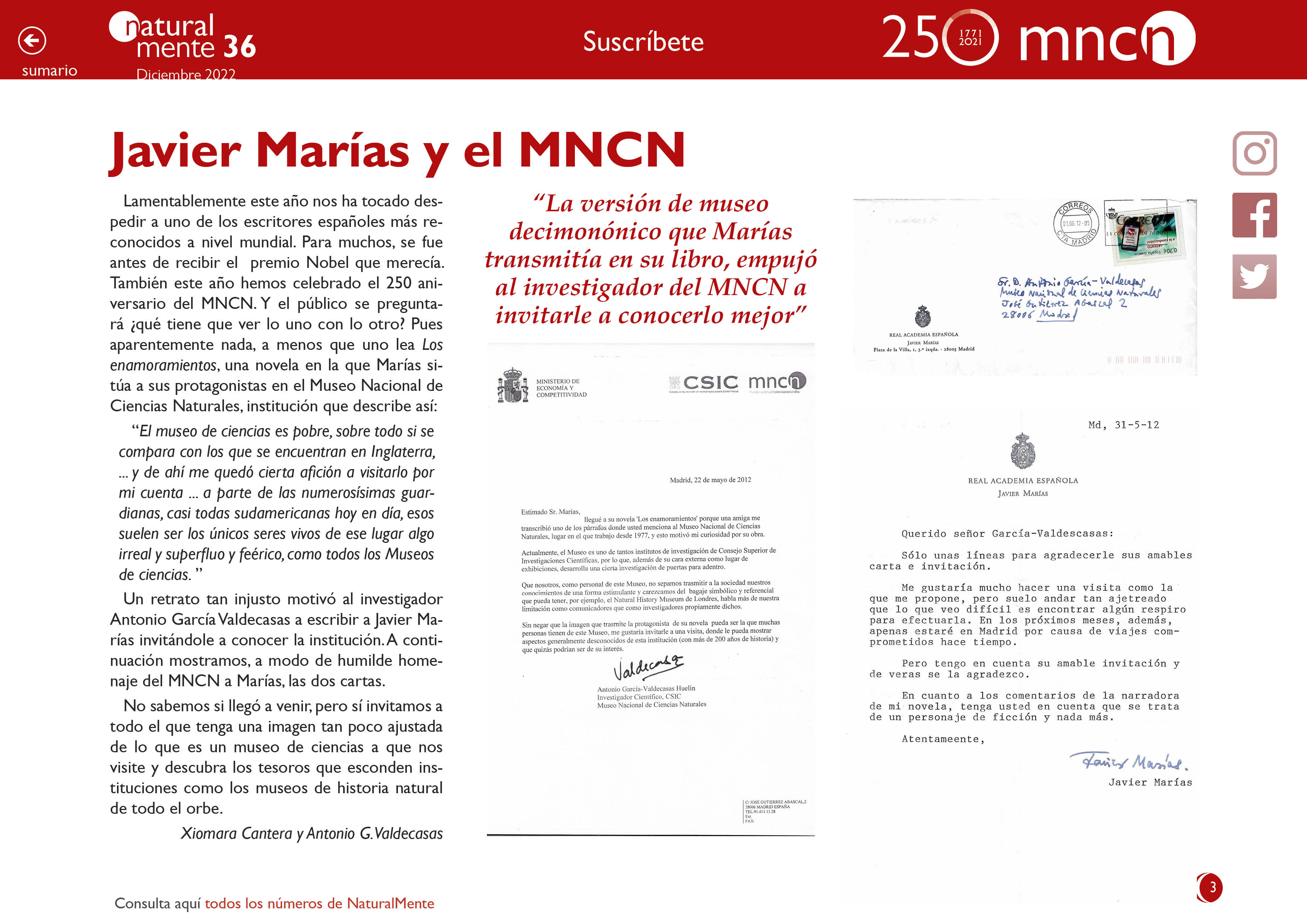 Javier Marías y el MNCN