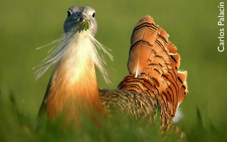 Investigadores del Museo Nacional de Ciencias Naturales (MNCN-CSIC) han estudiado la dieta de las avutardas, Otis tarda, y analizado las diferencias entre hembras y machos de la especie. Los datos apuntan a que, además de por su diferencia de tamaño, la dieta difiere entre ambos sexos por la segregación sexual característica de la especie.