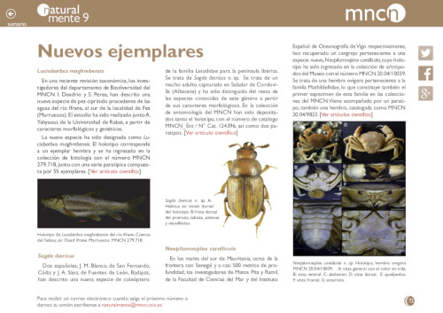Nuevos ejemplares Sección de nuevos ejemplares de la revista NaturalMente nº9 Publicado en Enlace a la sección de nuevos ejemplares de NaturalMente nº9 Documentación Sección de nuevos ejemplares de la revista NaturalMente nº9 Contacto