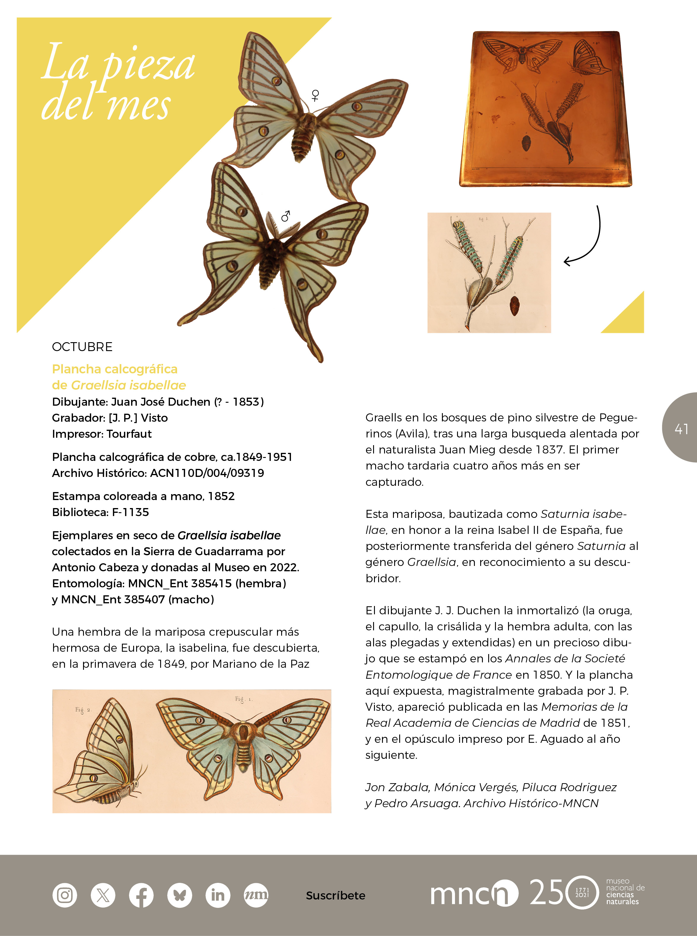 Pieza del mes Descubre "La pieza del mes" de octubre, noviembre y diciembre. Publicado en La pieza del mes Autores Jon Zabala Mónica Vergés Piluca Rodríguez Pedro Arsuaga Carolina Martín Marta Onrubia Cruz Osuna Celia M. Santos Mazorra. Documentación 07_PiezaMes_nm48.pdf Te podría interesar La pieza del mes Descubre las piezas más emblemáticas del MNCN a través de Go... ¿Cuál es tu pieza favorita?El megaterio el diplodocus y Di... Contacto