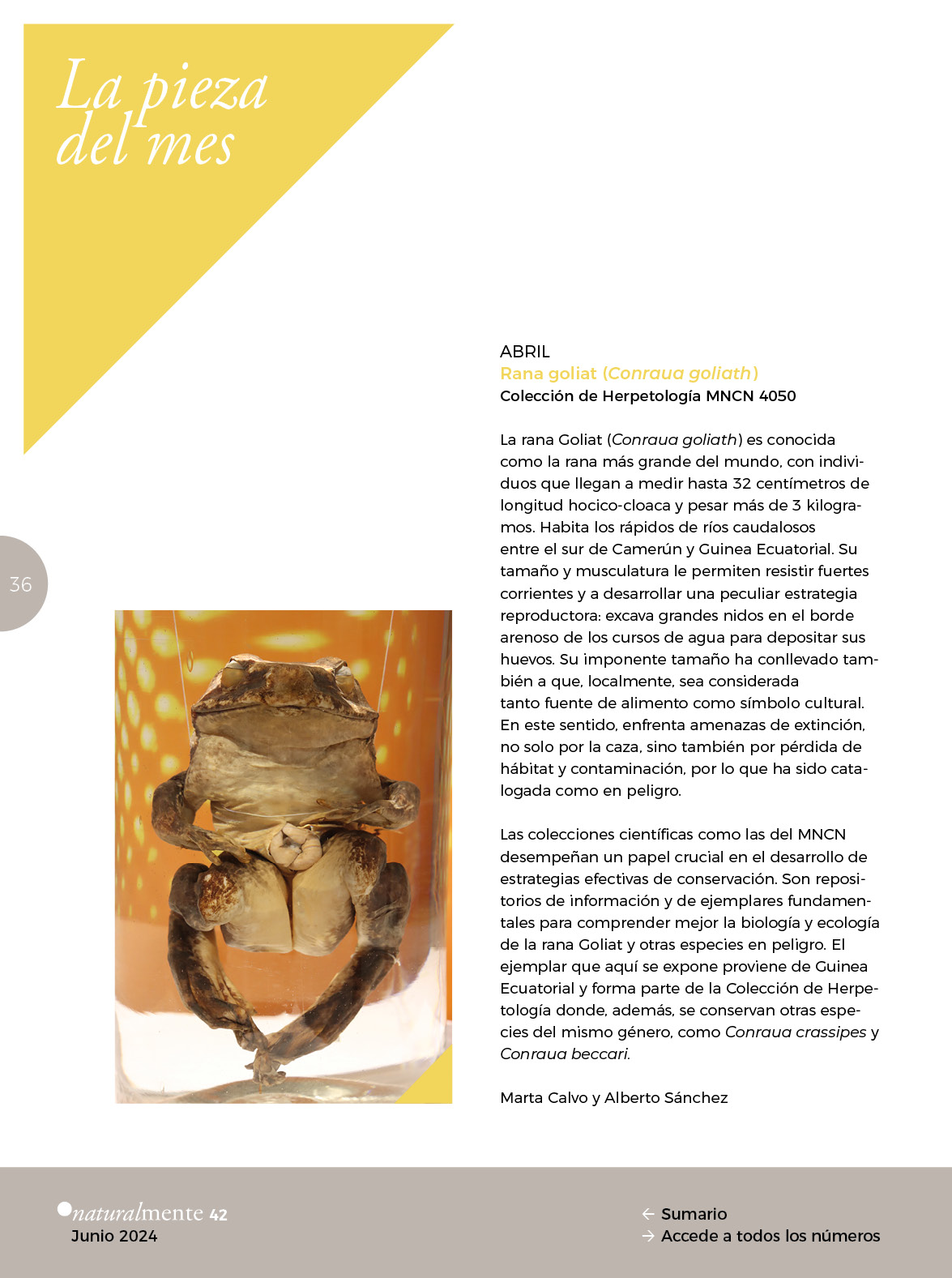 Pieza del mes NM42 Piezas destacadas entre el 15 de marzo y el 15 de junio de 2024 Publicado en NaturalMente 42 Autores Marta Calvo Alberto Sánchez Raquel Iglesias Jessica Arbelo Diana Ríos Leticia García Documentación Artículo en formato pdf Te podría interesar La pieza del mes Contacto