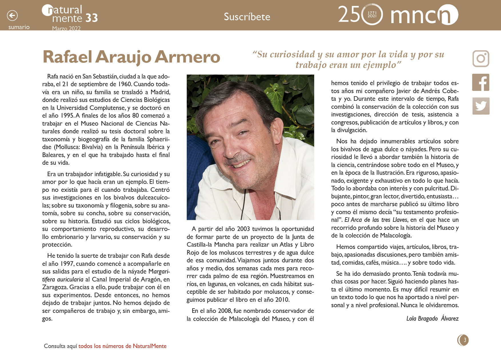 Rafa nació en San Sebastián, ciudad a la que adoraba, el 21 de septiembre de 1960. Cuando todavía era un niño, su familia se trasladó a Madrid, donde realizó sus estudios de Ciencias Biológicas en la Universidad Complutense, y se doctoró en el año 1995. A finales de los años 80 comenzó a trabajar en el Museo Nacional de Ciencias Naturales donde realizó su tesis doctoral sobre la taxonomía y biogeografía de la familia Sphaeriidae (Mollusca: Bivalvia) en la península ibérica y Baleares, y en el que ha trabajado hasta el final de su vida.