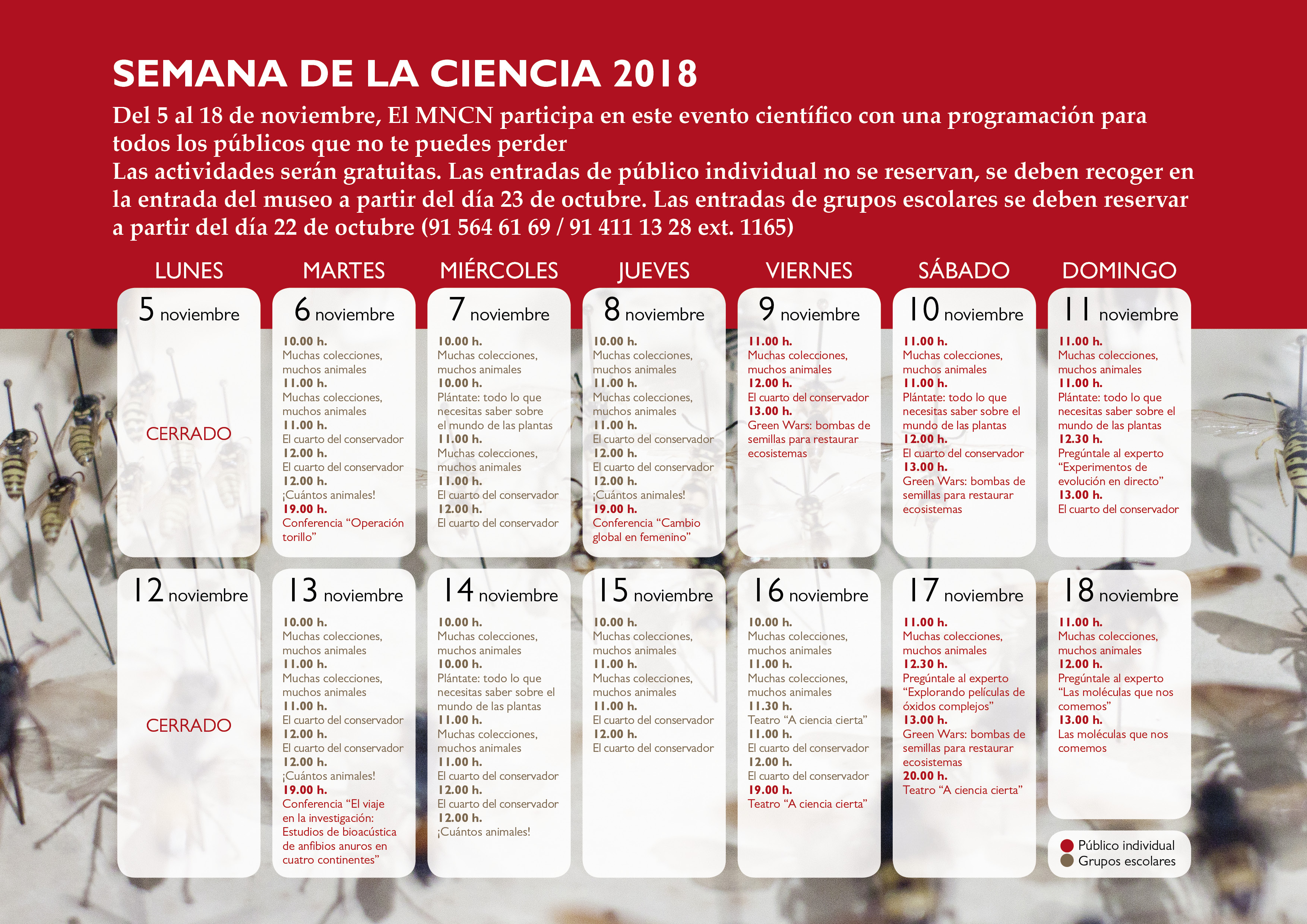 Semana de la Ciencia 2018 Actividades programadas durante la Semana de la Ciencia de 2018 Publicado en NaturalMente 19 Documentación Cartel de actividades Contacto