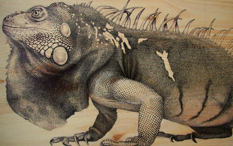Un proyecto basado en las representaciones de animales realizadas con bolígrafo tinta china y pirograbado sobre tablas de madera de gran formato que constituyen un conjunto de personajes que dialogan e interactúan entre ellos dinámico y siempre cambiante.