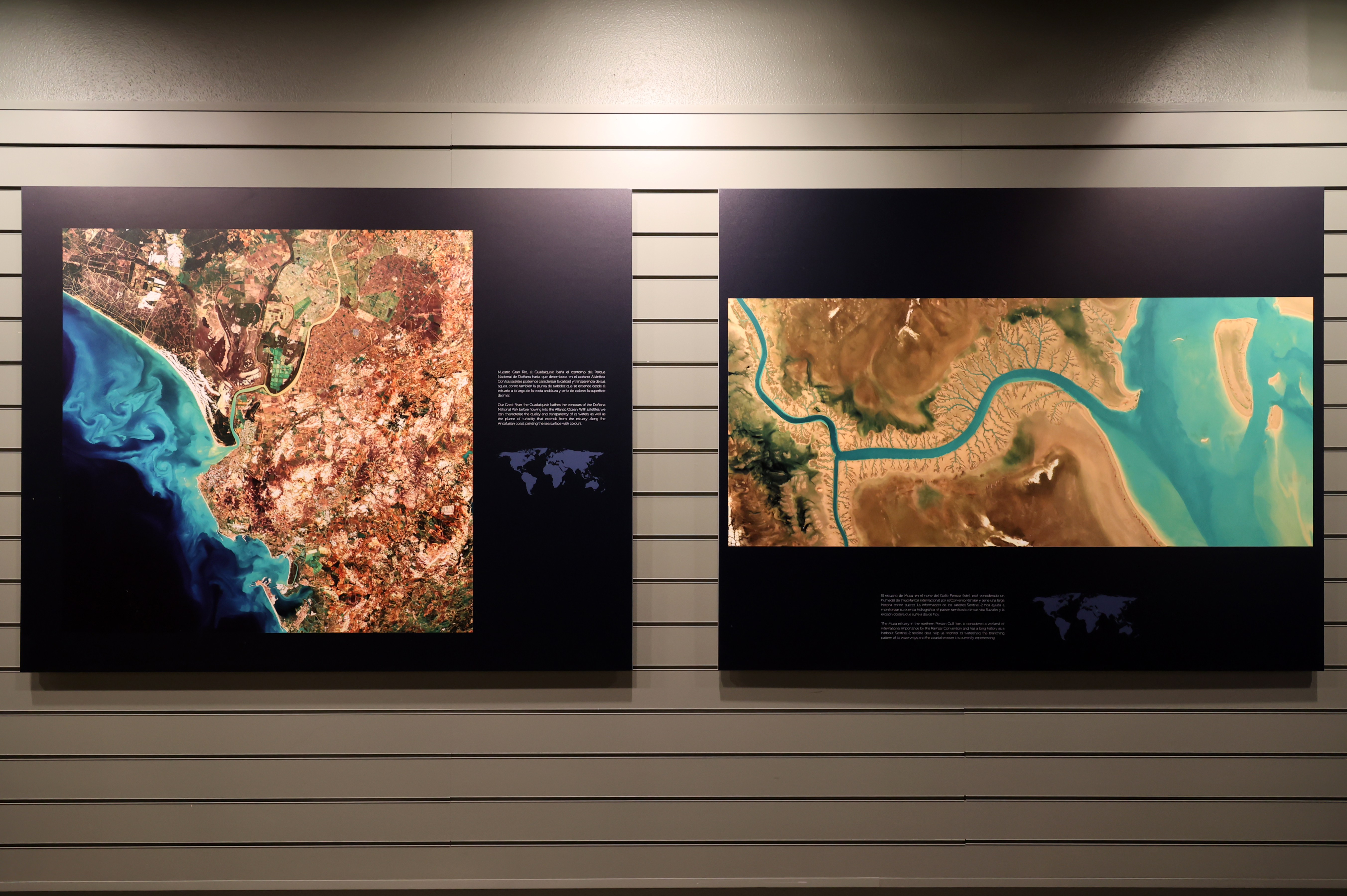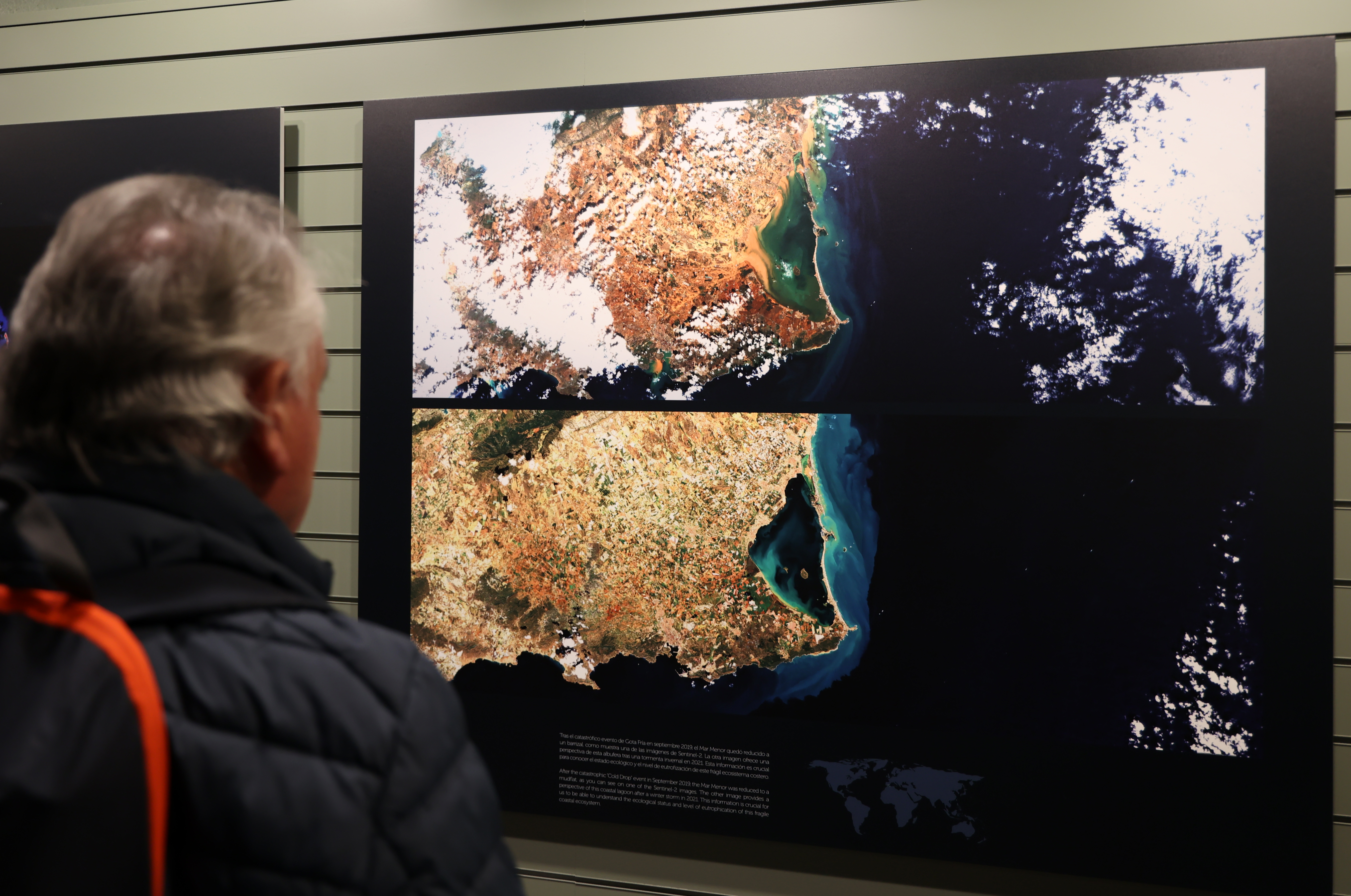 Enmarcada en la Década de los Océanos proclamada por la UNESCO, la muestra pretende acercar al público general la investigación marina a través de imágenes captadas por los satélites gemelos Sentinel-2. A través de ellas, se explica cómo estos sensores espaciales son capaces de ofrecernos información indispensable de lagunas, estuarios, albuferas, playas, manglares, deltas o arrecifes de coral, desde una perspectiva única para estudiar y comprender los procesos oceanográficos y biológicos que acontecen en estas regiones tan sensibles. Gracias a estos instrumentos, también podemos analizar el impacto que tienen los eventos extremos como huracanes, tifones o tormentas tropicales sobre el litoral para así poder cuantificar las consecuencias de los desastres naturales y del cambio climático.